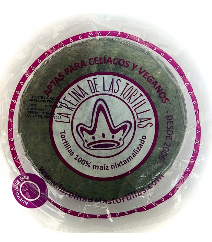 Masa de maíz nixtamalizado 82% (maíz (55%), agua, corrector de acidez (E526)), harina de maíz 12%, agua, extracto de zanahoria negra (zumo de zanahoria negra, maltodextrina, ácido cítrico), conservador (E200) y espesantes (E466, E412, E415).
